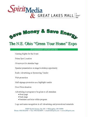 Join us at The Great Lakes Mall on Saturday and Sunday, October 24th & 25th. Home improvement and energy-oriented vendors will educate local consumers on how they can improve their homes before winter. Not only will this "greening" create more efficient and healthier homes for thier families, they can save money and energy too!